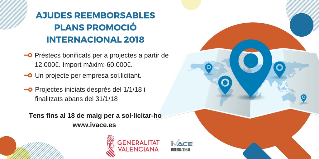 POST XARXES PRESTECSHoy se ha publicado en el DOGV la convocatoria de ayudas reembolsables de IVACE Internacional para la puesta en marcha de planes de Promoción Internacional de empresas valencianas (8-3-2018)